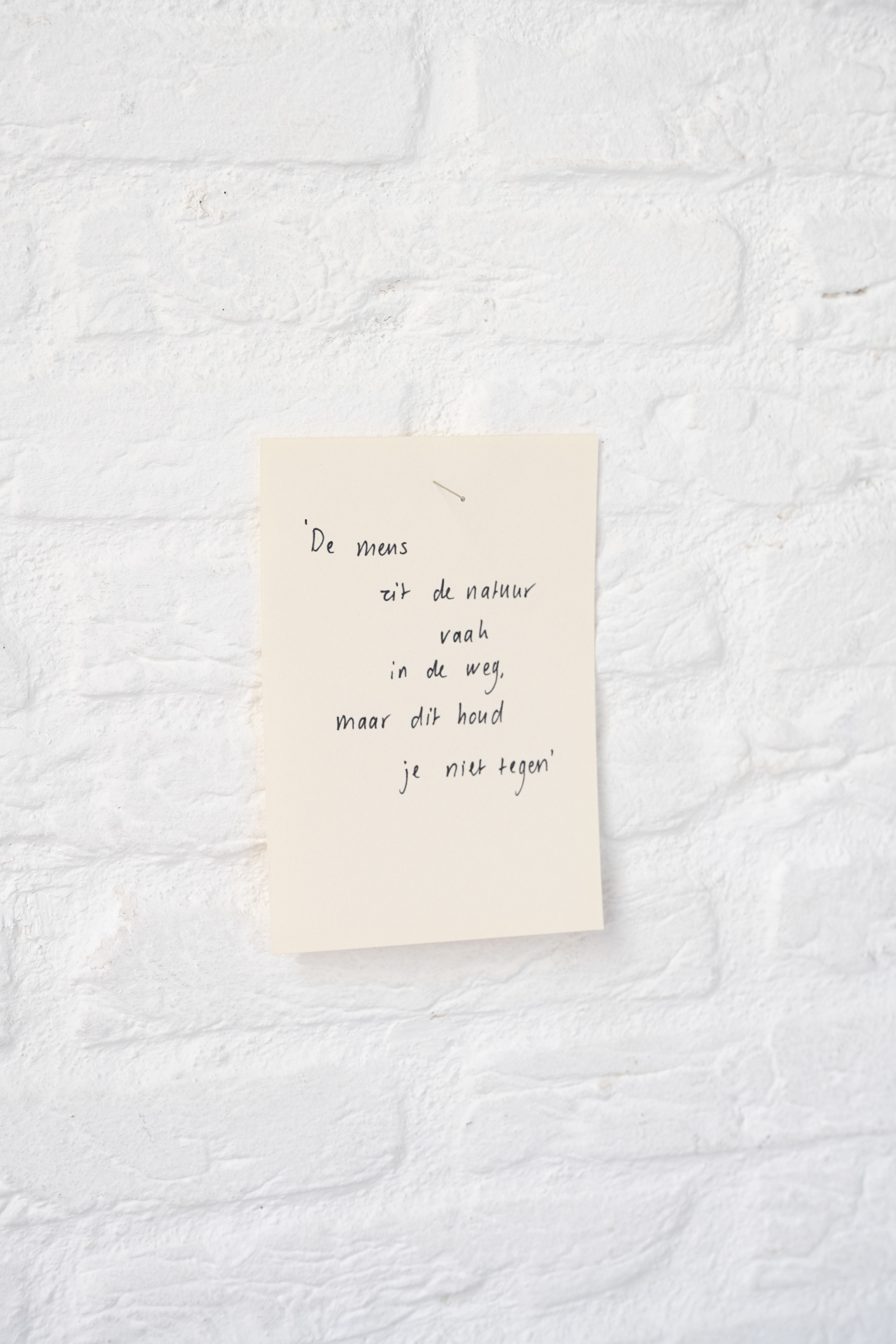 During my residency at Bewaerschole, I walked the path from Westenschouwen to Burgh that lies between the village and the dune area. In doing so, I had the village side on one hand, the side man has made his own, where people live and recreate. The other side is nature, the dune and forest area. We can see the path between them as a boundary between the two worlds. But this is certainly not a hard border. On both sides we find traces of animals living in the area, but humans also leave their footprints on both sides of the path. While walking along the path, I recorded things that catched my eye through photography and collected the stories I encountered.